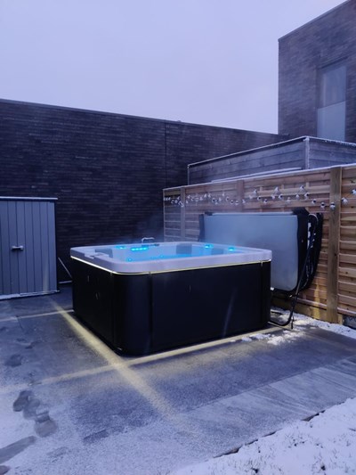 Deze 6-plaatsen spa beschikt over 5 diepe zitplaatsen en een leuke ligzetel. De Viskan Asperö is ook uitgerust met een instap/cool down combo-stoel. Deze laatste kan ook dienst doen als kinderzitje. Elke massage plaats in de Asperö spa is uniek. De spa heeft een ruime selectie aan verschillende soorten jets in elke stoel om een zalige, totale hydromassage te bieden tijdens elke sessie. Genieten doe je het best.. in je Viskan Asperö.- Omkasting verkrijgbaar in zwart of wit (aluminium met led-verlichting)